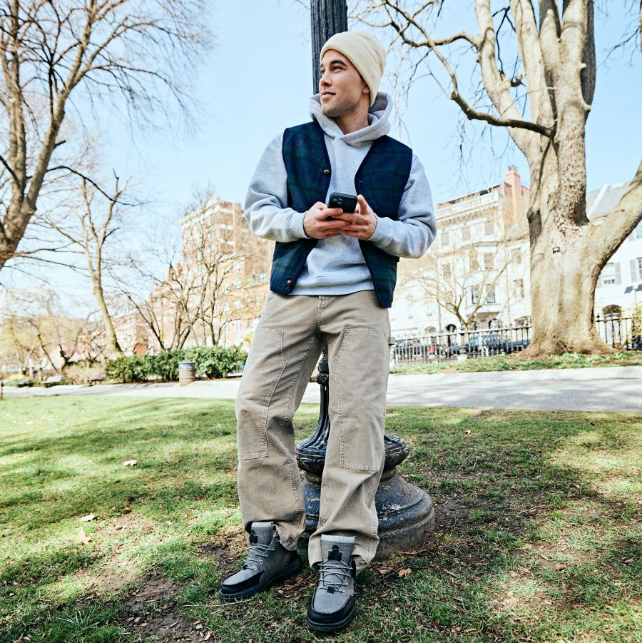 The Bradley Tumbled Classic is a far cry from the stiff. heavy. blocky boots of the past. Those were your grandpa’s boots. These are rugged yet soft. with a lightweight and flexible feel. With stretchy laces that don’t need tying and a wool blend lining. they’re cozy. warm and wonderfully easy to get on.