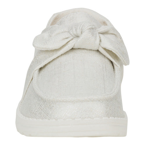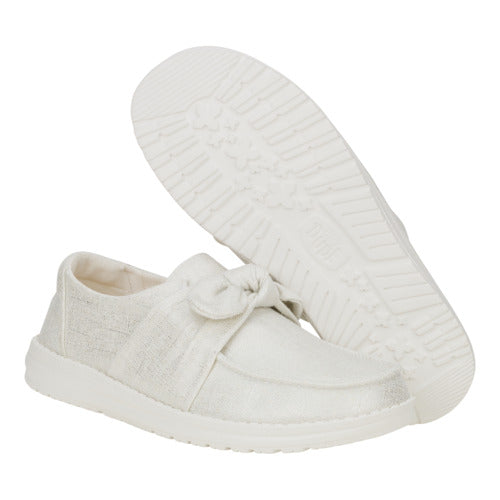 You are the belle of the ball in the Wendy Bow Shimmer. This dazzling new go-to combines a playful fixed bow with a head-turning metallic shimmer upper. making every step shine. While a fun. cow print EVA foam-filled removable insole cushions underfoot.