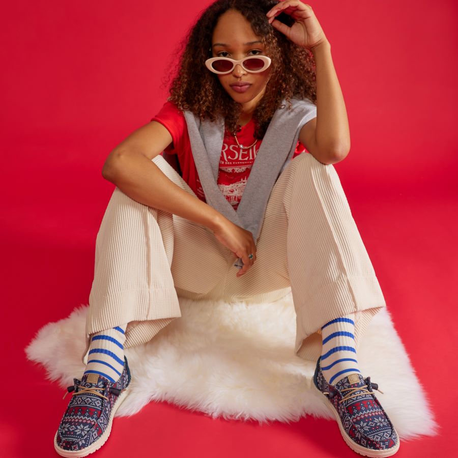 Step into sweater season (see what we did there ) in an alpine print that rivals your coziest knits not to mention just as comfortable. With HEYDUDE signature construction like a cushioned ankle collar. removable foam insole. and lightweight flexible outsole. Sweater weather. we are *so* ready for you.